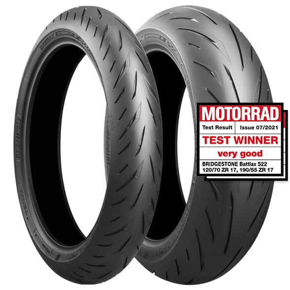 The BATTLAX HYPERSPORT S22 is a premier tire for the modern street sport bike. Starting where the S21 left off, the S22 has improved both the compounds and pattern design, to promote better handling in all conditions, without compromising wear.**